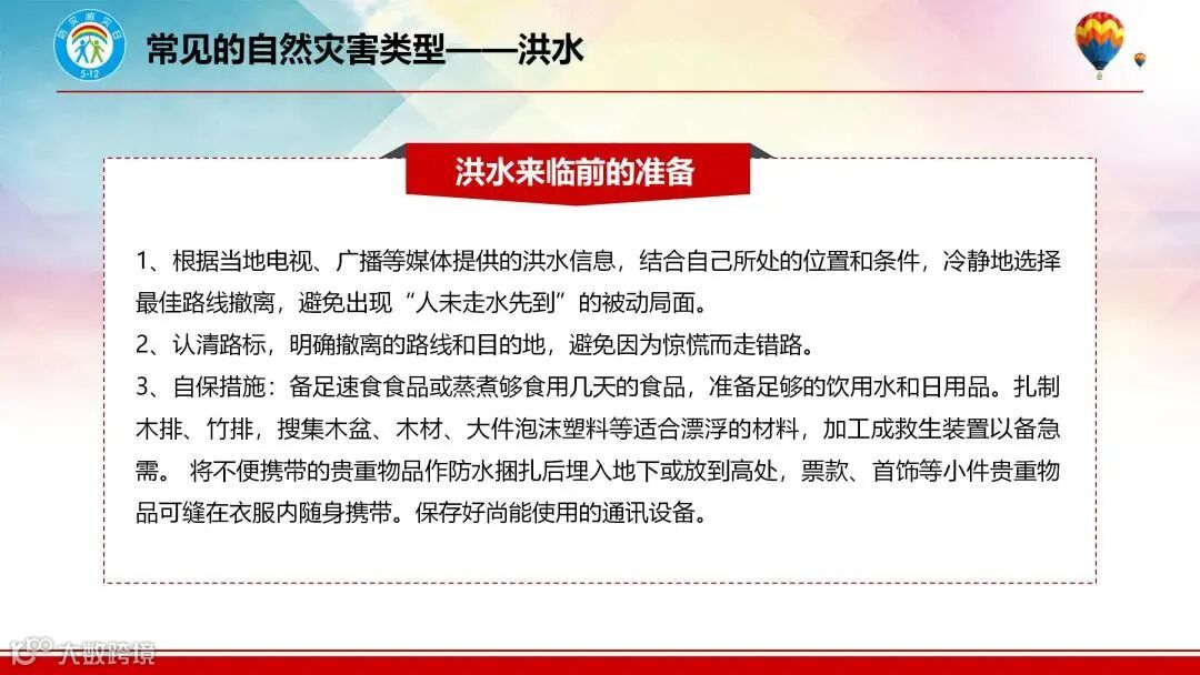今年5月12日是我国第15个防灾减灾日,主题为“防范灾害风险、护航高质量发展”。5月6至12日为防灾减灾宣传周。为认真贯彻中电建集团公司《关于做好2023年全国防灾减灾日有关工作的通知》(安环〔2023〕6号),牢固树立底线思维和风险意识,加强自然灾害防治能力建设,加大灾害风险排查整治力度,提高福建院应对自然灾害风险的应急处置能力,经公司安委办、应急办决定于2023年5月6日至12日防灾减灾宣传周期间,开展系列防灾减灾知识宣传活动。