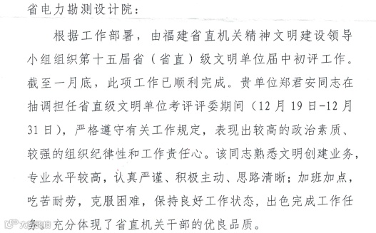 宾雪、姚德全、张家杭、陈鸣、蔡嘉杰、朱朱、郑君安等同志外派期间,讲政治、顾大局,勇于担当、开拓进取;项目经理阮文明带领柔少瑜、郑国进、瞿述斌等成员,狠抓落实、高效建造,喜获相关政府、业主的肯定。