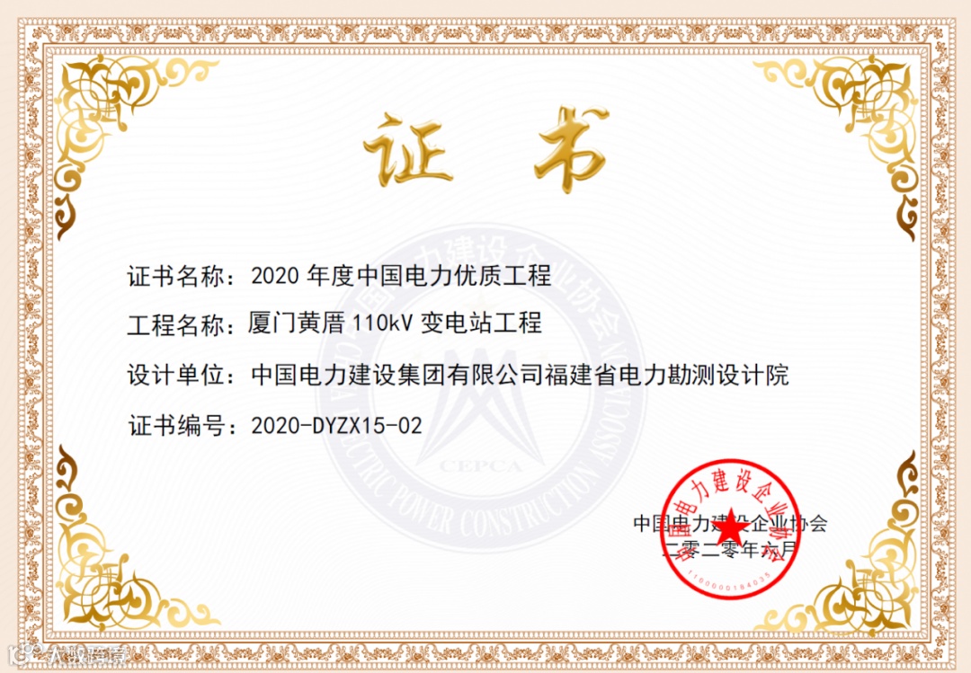 日前,中国电力建设企业协会公布了2020年度中国电力优质工程评审结果,福建院总承包的厦门黄厝110千伏变电站工程荣获“2020年度中国电力优质工程奖”,荣誉鼓励的同时也意味着福建院在设计水平及工程管理上的再次跨越。