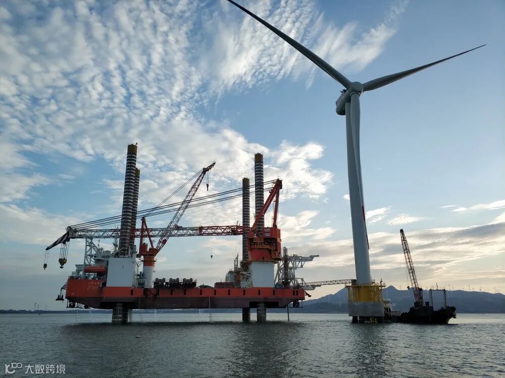 2019年4月18日由华东院和福建院联合设计的平海湾海上风电二期I标段项目顺利完成首台风机吊装。
