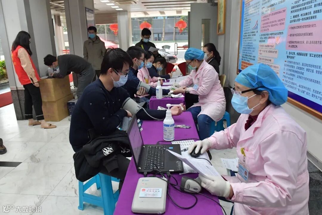 为避免人员聚集,献血流程采取分批次分时段进行。在现场医务人员及公司团委青年志愿者的引导下,前来献血的员工有序通过填表区、体检区、初筛区,依次进行个人信息录入、测额温测血压及血液检验,在符合各项献血标准的情况下,进入献血车内完成最终的血液采集。