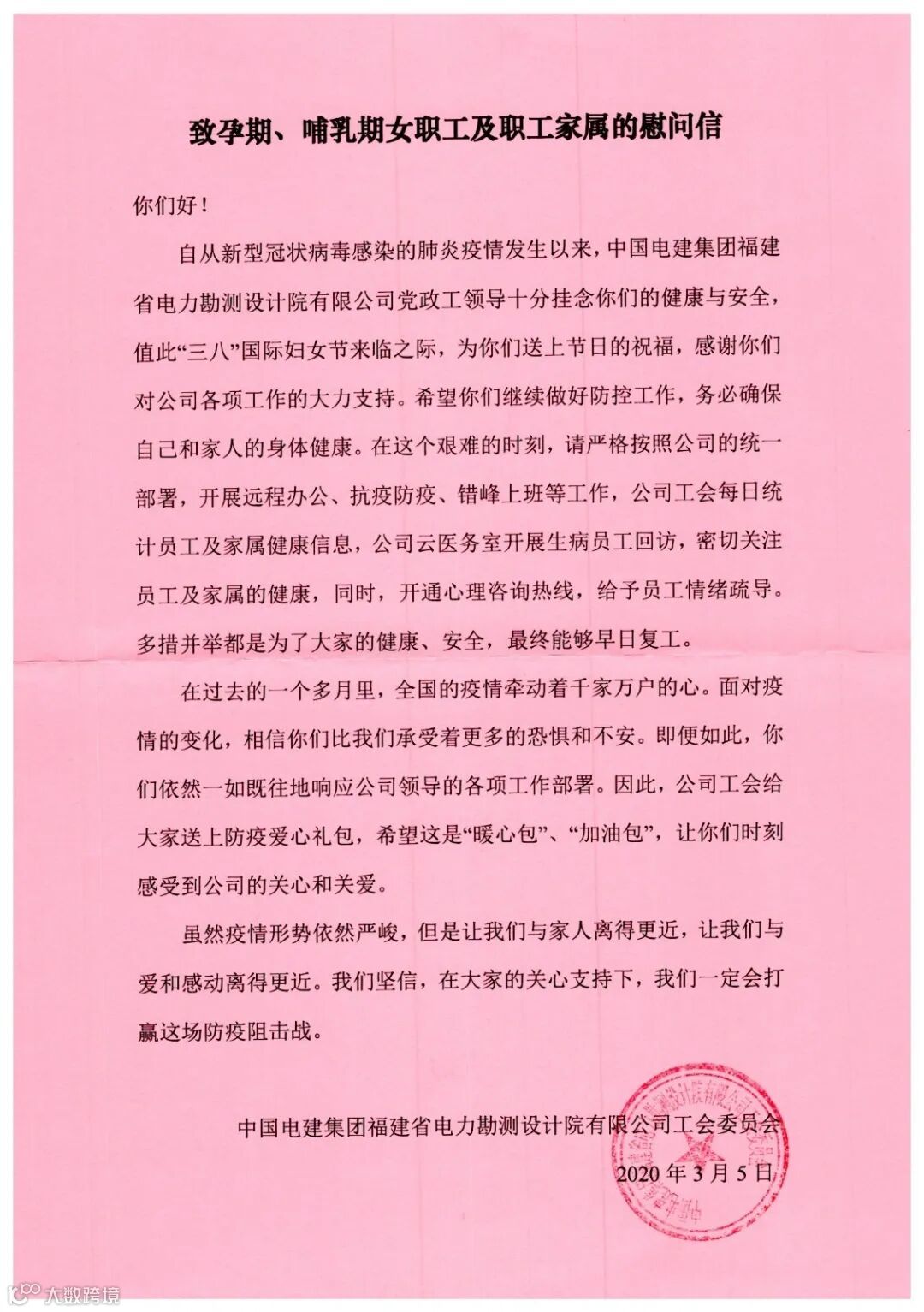 感谢身处孕期、哺乳期的男职工家属对公司工作的理解和支持;
