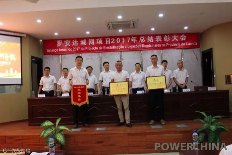中国水电罗安达省电气化及入户连接项目部在安哥拉召开2017年年度总结表彰大会。福建院作为参建单位并组建的城网项目部荣获“2017年度先进集体”称号;林清龙、廖宝文获得“优秀设计标兵”称号;陈旭海获得集团“先进工作者”称号;陈友福、陈航鹏、陈荣钰、陈启楷、李宏进、李逸健获得“先进个人”称号,项目设总林清龙作为福建院安哥拉项目部代表领奖。