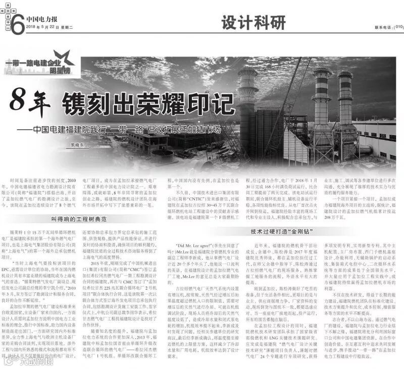 时间是备注前进步伐的刻度,2010年,中国电建福建省电力勘测设计院有限公司(简称“福建院”)搭船出海,开启了孟加拉燃气电厂的勘测设计之旅,至今,该院在孟加拉连续设计了8个燃气电厂项目,成为在孟加拉承接燃气电厂工程最多的中国电力设计院之一。艰难闯荡,成就彰显,8年非同寻常的孟加拉创业之路,福建院的燃机设计团队在海外市场开拓中写下了浓墨重彩的一笔。
