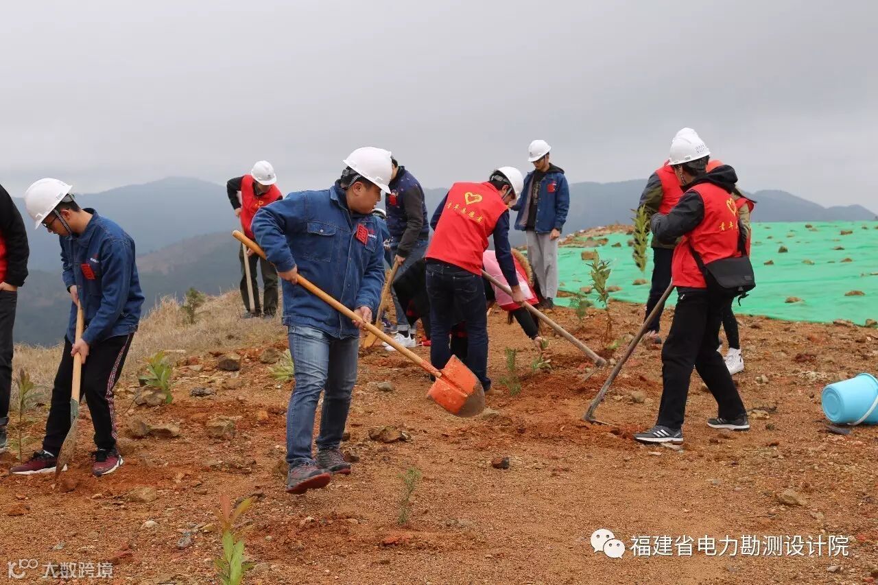 福建院团委与大唐新能源福建公司团委组织团员青年到古田泮洋风电场(我们自主投资建设运营的哦!)开展义务植树活动。植树地点选在风机基础施工平台附近,帮助进行施工后植被恢复。