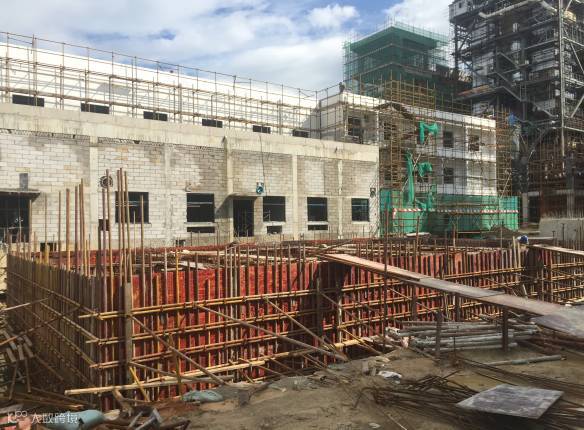 机组排水槽侧壁浇筑完成
