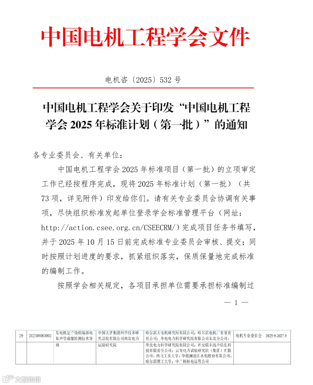 西北院将以此次标准立项为契机,持续深耕先进发电机绝缘故障诊断技术,进一步夯实技术积累,为集团公司高质量发展提供坚实技术支撑与保障。