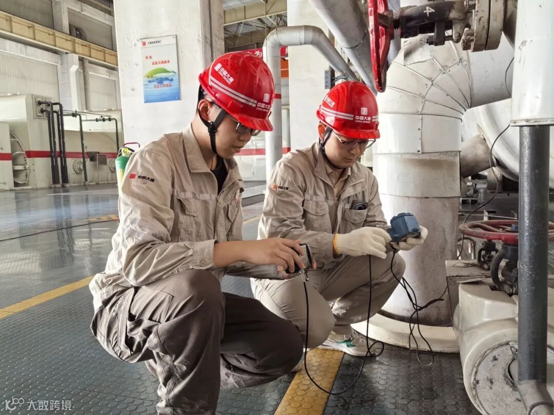 面对厂房内40℃以上的高温环境和设备持续散发的热浪,技术人员身着密实的工作服,以专业素养和顽强意志展开攻坚。试验现场,在轰鸣的机组设备与灼热空气的双重"烤"验下,技术人员紧密协作、高效协同,参数核对、设备调试、现场协调等工作有序开展,用专业的技术与严谨的作风确保了试验的顺利进行。