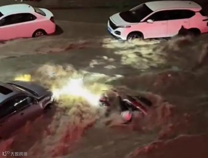 2024年7月5日,山东淄博市博山区因强降雨导致突发大水,一名男子驾驶两轮车发生侧翻,在急流中连人带车被卷走。