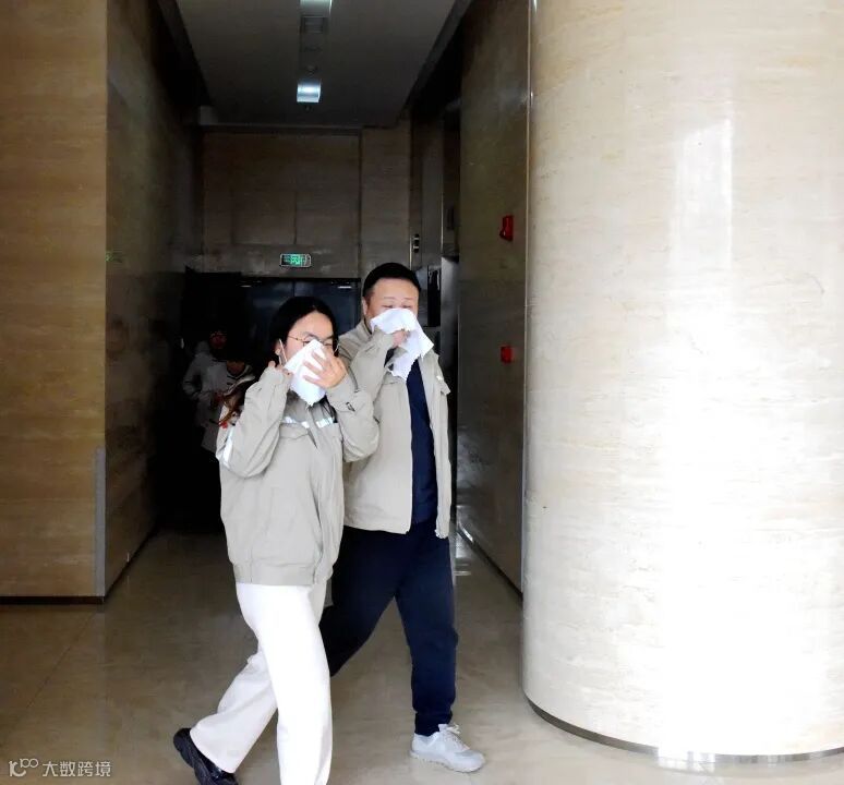 “办公楼发现火情!请各演练小组到位,请各楼层疏导人员引导员工沿消防安全通道有序撤离办公楼......”14点10分,随着消防警铃声响起,演练正式拉开序幕。各楼层疏导负责人在收到应急疏散指令后,迅速组织所在楼层人员疏散,提醒疏散人员切断电源、关闭门窗。楼内人员用消防逃生湿毛巾捂住口鼻弯腰低姿疏散,紧张、有序、快速地沿步行楼梯右侧消防安全通道撤离办公楼,楼层疏散负责人检查没有人员滞留后也迅速撤离。整个演练活动配合默契,行动迅速、秩序井然。