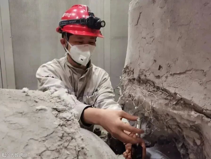 材料所夏霁雯、祝鹏勃在临汾热电厂1号机组c修现场进行磁粉、测厚工作,排查受监金属部件裂纹、减薄等缺陷。