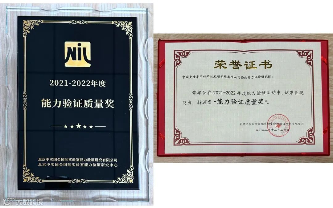 近日,西北电力试验研究院化环实验室获得实验室能力验证专业权威机构颁发的“2021-2022年度能力验证质量奖”。