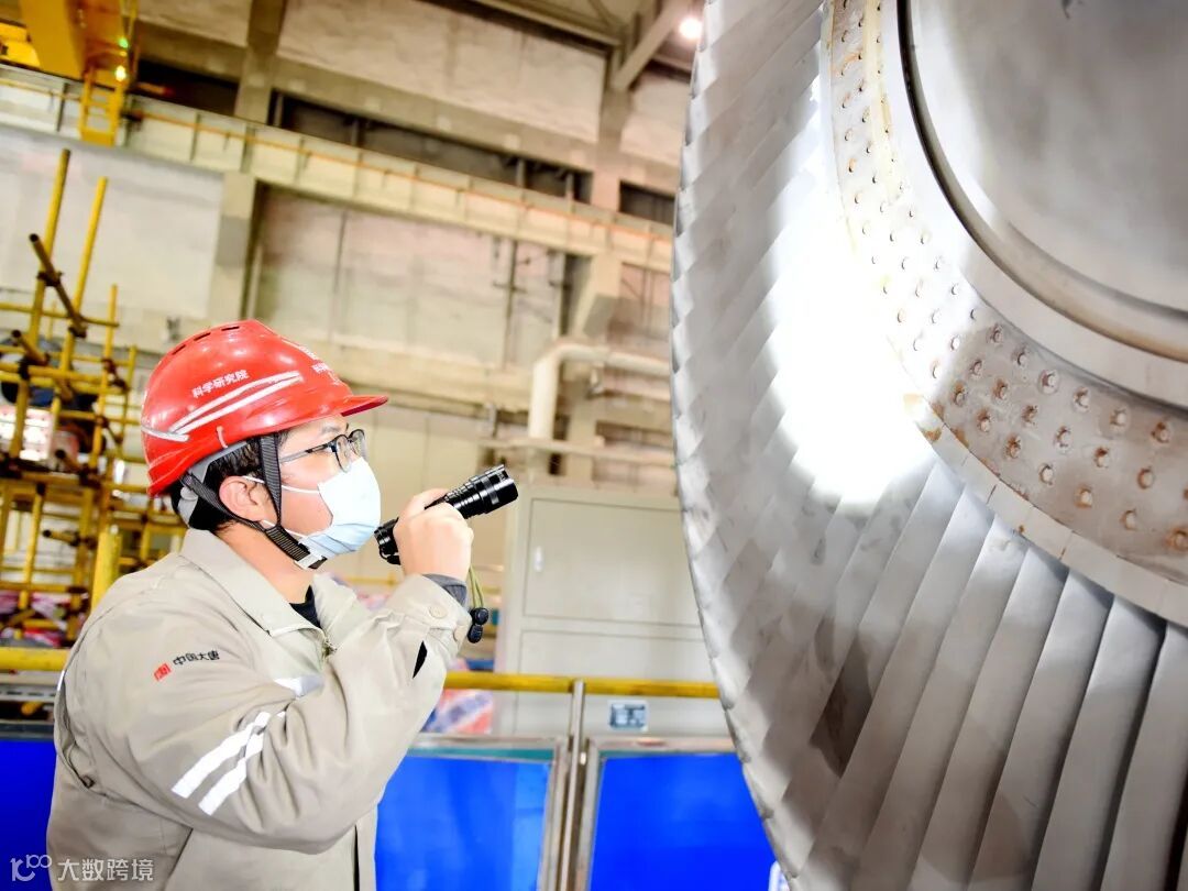 陈璟在彬长电厂对低压转子末三级叶片叶根区域进行目视检测。