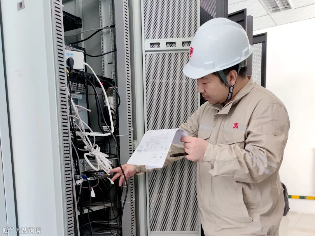 大数据研究中心白雪萌在甘肃昌马东北风电场机房,详细核对各网络设备部署、接线情况,并依据实际上架设备及接线情况对其图纸进行修正,圆满完成机柜功率预测系统服务器及网络设备的梳理,确保场站安全稳定运行。(白雪萌)