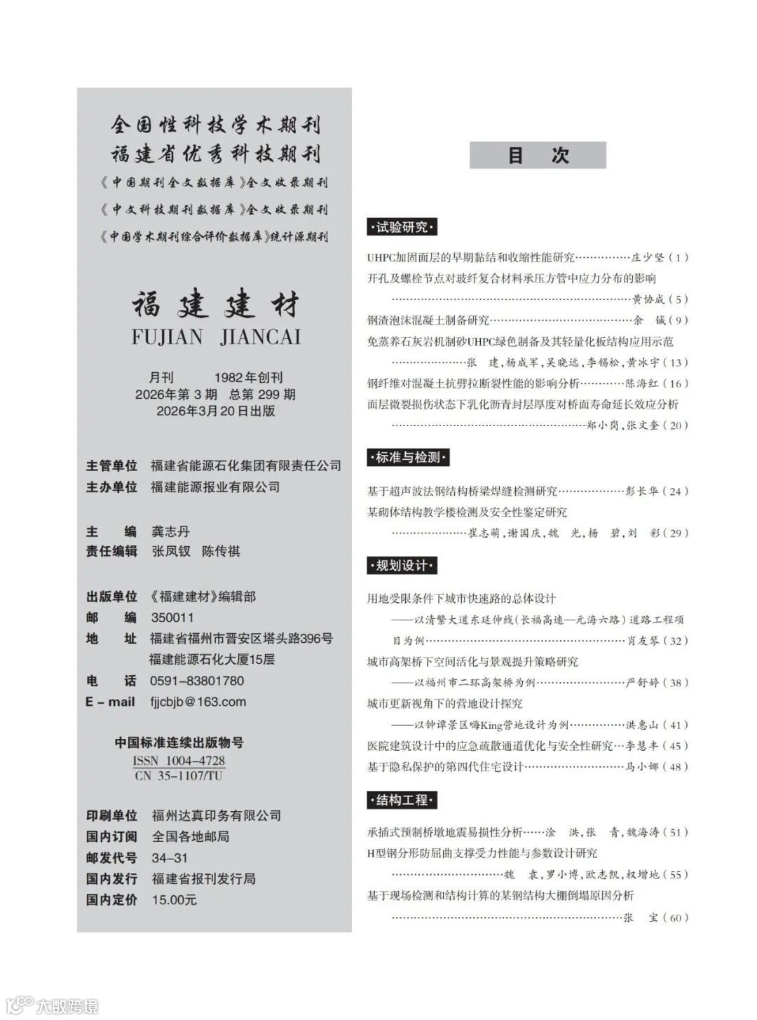 期刊速递丨《福建建材》2026年3月刊