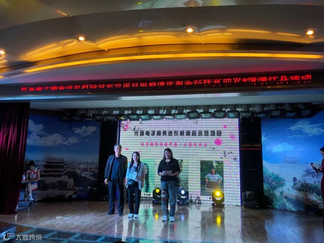△代县电子商务公共服务中心张宏光经理上台为各站长颁发扶贫助农证书,并合影留念