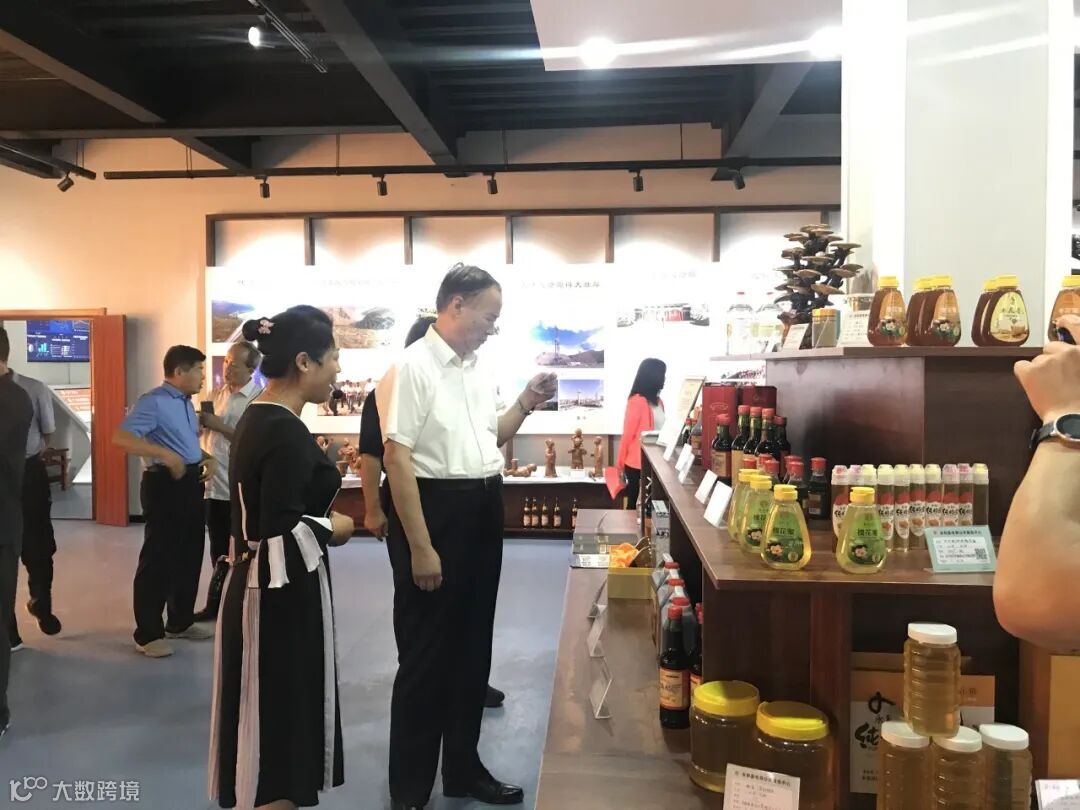 在O2O特色体验馆,讲解员向调研团介绍馆内陈列的特色农产品。永和农产品特色馆是永和电子商务线下体验中心,主要用于展示永和县下7个乡镇和近30家企业的特色农产品,目前,近300多件产品均已陆续在特色馆展出。调研团对永和县的农副产品赞不绝口,现场扫码添加“情暖永和”平台,下单购买农副产品。