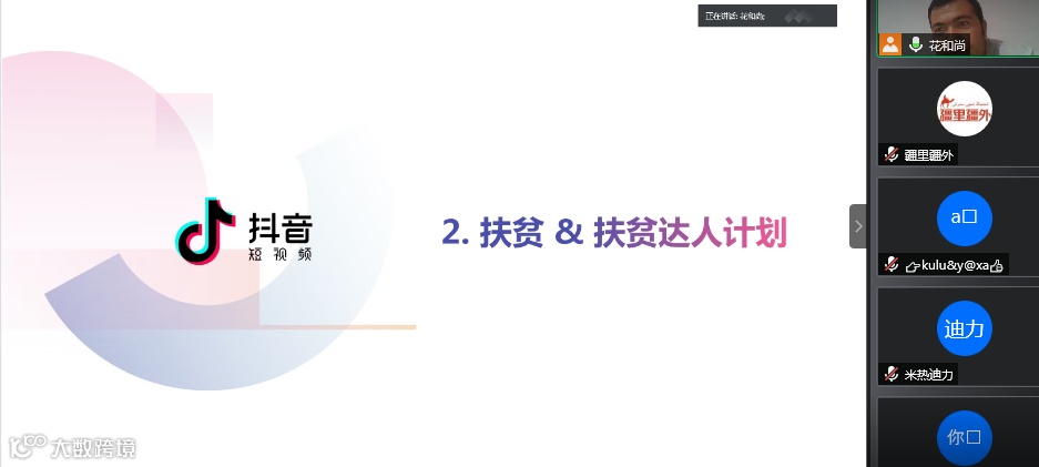 本次培训共32人参与,主讲培训师艾尼利用腾讯会议为大家讲解了新型电商发展与扶贫达人计划(介绍直播平台)。培训讲师用通俗易懂的语言,深入浅出的讲解了电子商务概念并通过实操案例让大家更生动的理解电子商务知识。