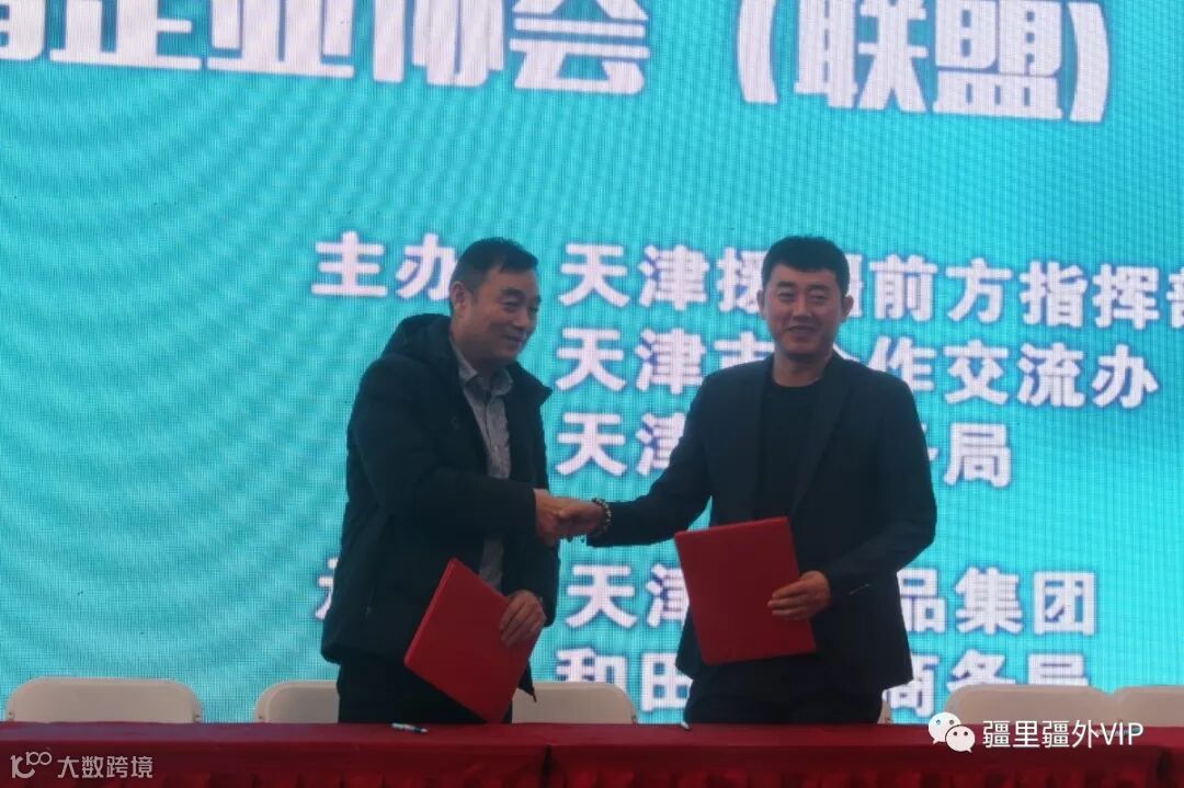 本次联盟成立仪式以及签约仪式由天津援疆指挥部、天津市合作交流办、天津市商务局主办,天津市食品集团、和田地区商务局承办,天津市合作交流办、市商务局、市农委、共青团市委、市工商联等部门负责人和天津食品集团、桂发祥集团、天士力集团、天津新疆商会、和田山东商会、新疆国润股份有限公司、和田疆里疆外科技有限公司策勒分公司等30余家会员企业代表50余人参加。