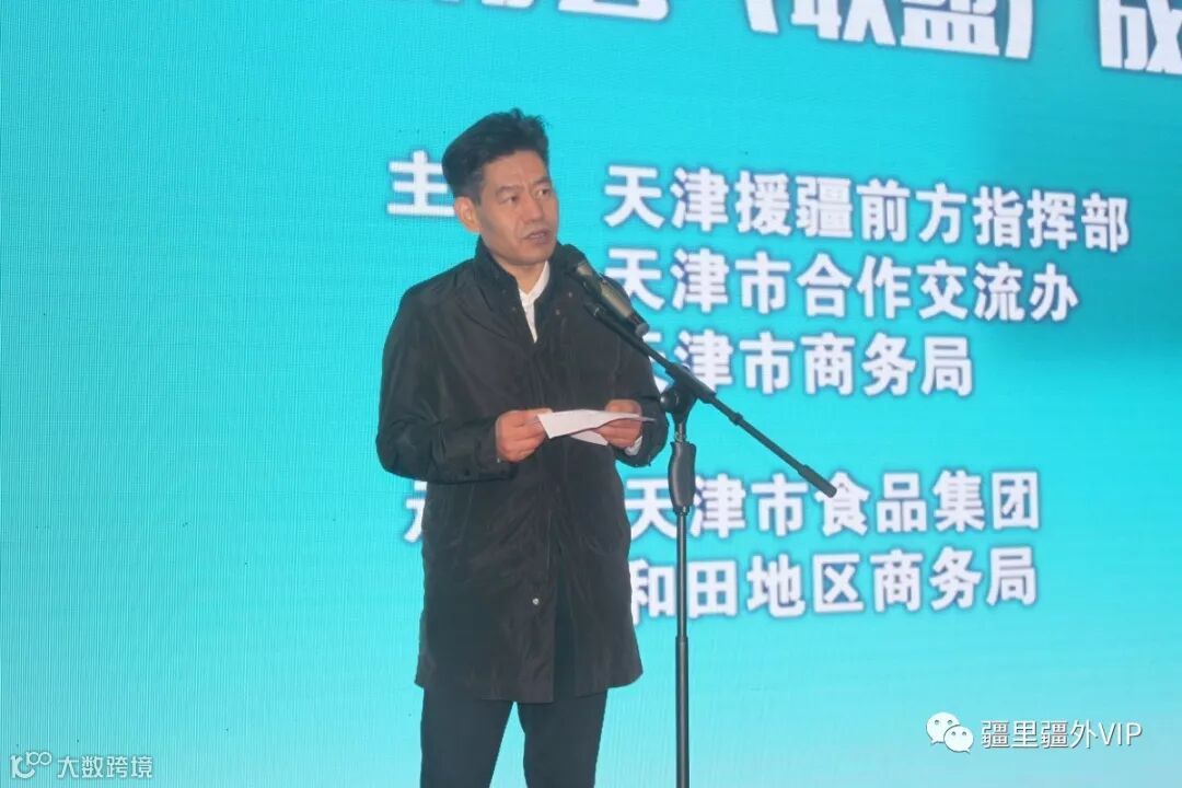 签约仪式开始前,天津援疆前方指挥部总指挥、和田地委副书记李文运发表了重要讲话。他表示和田地区的大枣、核桃等在国内也是很有名的,但是由于当地农户的销售渠道不畅通,物流成本高等问题,让很多优质的农特产品产生滞销困难,直接影响了贫苦地区农户的收入。今年是脱贫致富的关键一年,按照市委市政府关于“东西协作,对口帮扶”等政策的指示,天津援疆前指挥在助力和田地区脱贫致富道路上,付出了巨大的努力,以展会、实体店、网店为抓手,积极开拓市场,扩大和田地区农产品在京津冀地区的影响力和效应,扩大销售规模助力和田地区的脱贫攻坚。