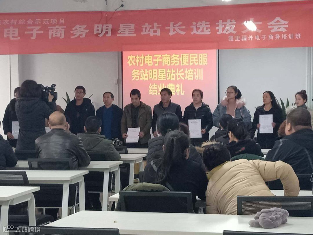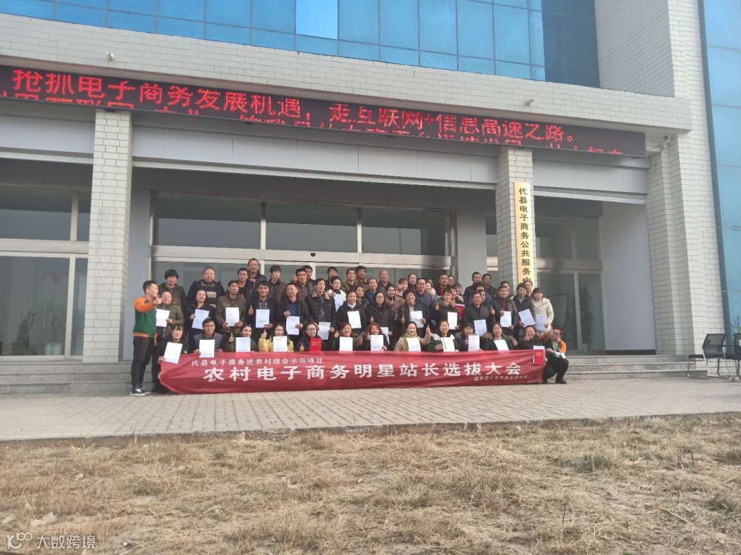 在代县经信局的指导与鼎力支持下,在和田疆里疆外网络科技有限公司和公共服务中心的精心准备下,2019年1月4日,电子商务进农村便民服务站明星站长培训班开幕,在代县电商公共服务中心三楼培训室隆重举行。2019年1月10日在代县公共服务中心举行明星站长选拔大会结业典礼。本次典礼邀请了代县经信局李局长,姚副局长,和田疆里疆外网络科技有限公司区域总监胡炜,参加此典礼的有54位明星站长候选人。