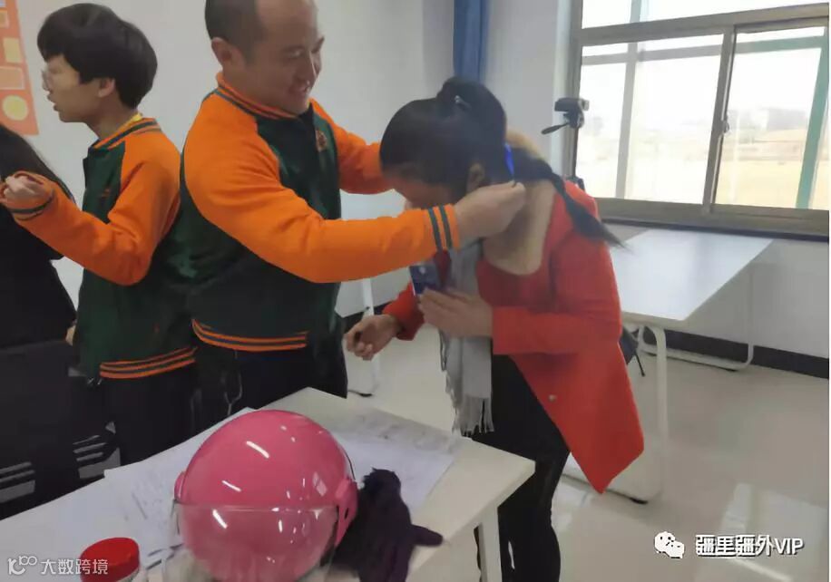 (图为贾永权在电商培训中为学员佩戴学员证)