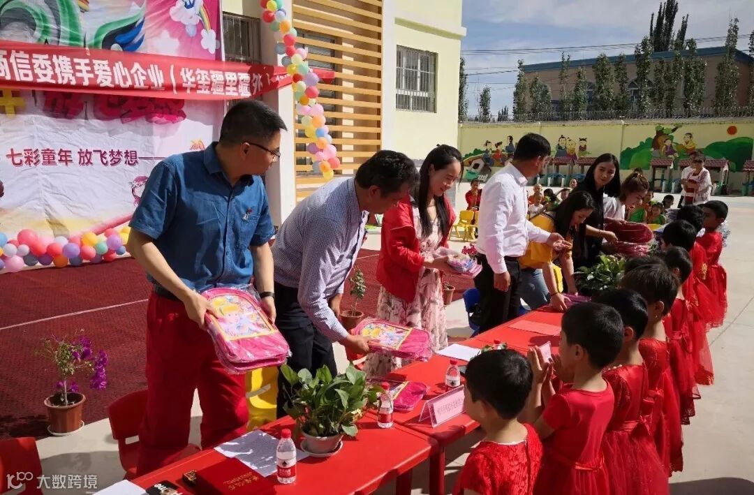 疆里疆外网络科技有限公司为他们送上了爱心书包及文具500套,作为柯坪县电子商务进农村示范县项目负责企业,疆里疆外立志将“互联网”+“农业”的新模式带到柯坪县,让柯坪摆脱贫困县的帽子,实现真正的致富奔小康。