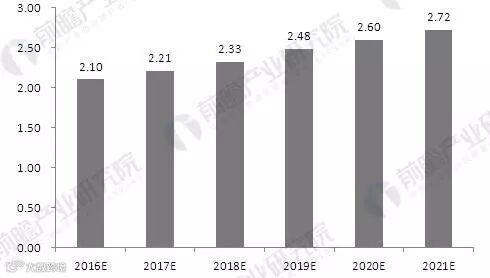 2016-2021年我国农村网民人数预测(单位:亿人)