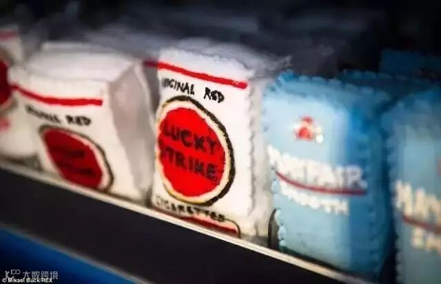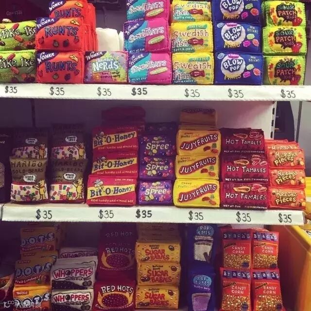 Lucy Sparrow,她即是售货员,清洁工,又是收银员。而这家商店的9000多件商品,都是Lucy花费了近9个月做的毛毡艺术品,真的...可以...以假乱真。货架上堆着小孩子喜欢的糖果饼干(旁边的味姨看到口水都流出来了)