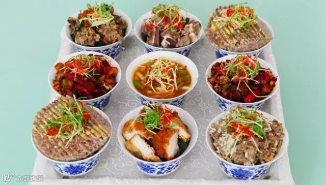 在这里可以吃到正宗的回民宴席,比如著名的“九碗三行子”。“九碗三行子”顾名思义,就是全部用九只大小一样的碗来盛,并要把九只碗菜摆成每边三豌的正方形.这样无论从南北或东西方向看,都成三行。它不只是一道简单的菜肴,如果取掉中间的水菜,再仔细看就是一个回族的“回”字,九在回族人的心目中,是个吉利的数字,当平整的丈盘里盛着九碗三行子端上来时,其实已涵盖了人们最朴素的祈愿:天下太平。