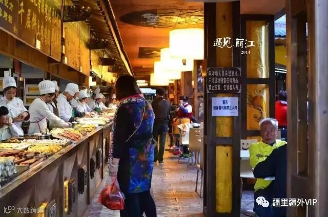 从四方街到大石桥的很短的一条街道上,分布有十几家小餐馆,基本上每家餐馆都有云南特有的米线。种类有砂锅米饭和煮米线。另外還有腊排骨、鸡豆涼粉、纳西米糕、牦牛奶、包浆豆腐等美食。