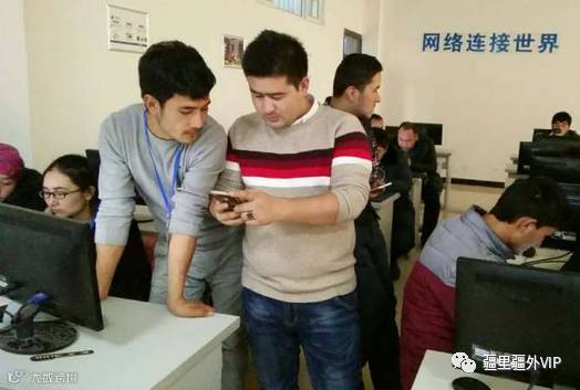 2017年元月,首批顺利完成培训的疆里疆外员工返回洛浦县,运用自身所学,全力投入到反哺家乡的行动中。顶岗实习的内容已经固化成每位员工的职业素养,图为两名维吾尔族同事到洛浦县职业技术学校讲授电商基础知识。
