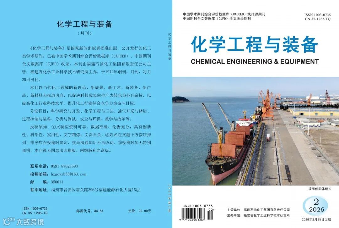《化学工程与装备》《Chemical Engineering & Equipment》(CN 35-1285/TQ,ISSN 1003-0735)创刊于1972年,由福建石油化工集团有限责任公司主管、福建省化学工业科学技术研究所主办,月刊,每月25日出刊。被中国学术期刊综合评价数据库(CAJCED)、中国期刊全文数据库(CJFD)收录;获得福建省优秀科技期刊等荣誉称号。