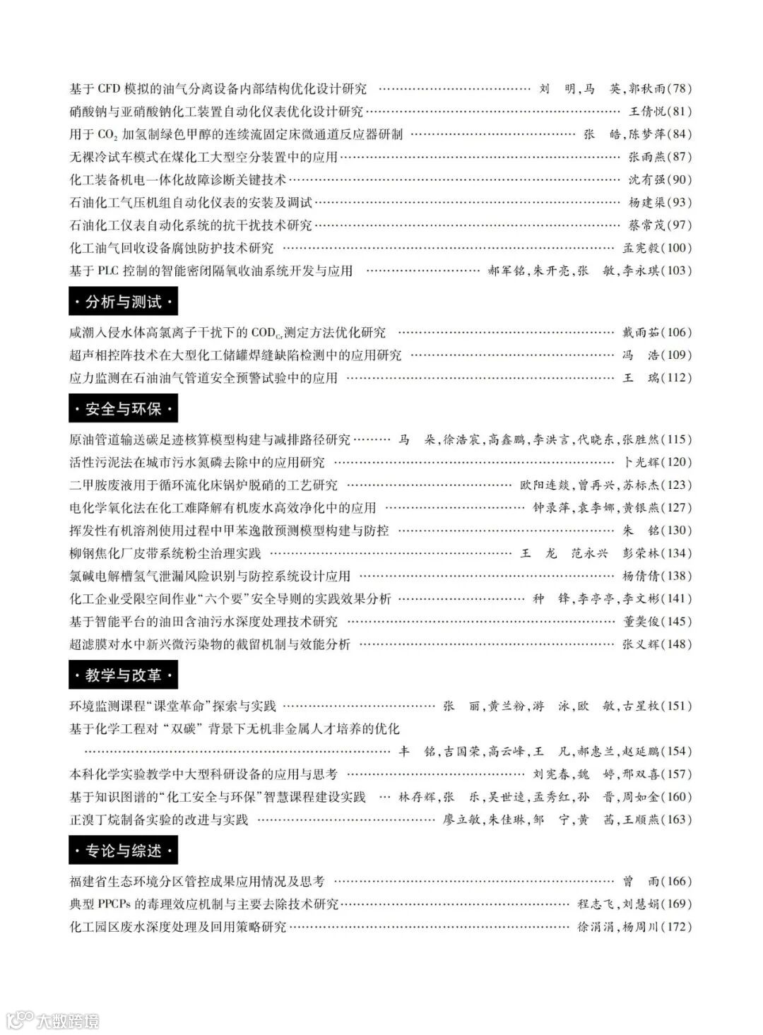 本刊分设科学研究与开发、化学工程与工艺、油气开采与储运、过程控制与装备、专论与综述、分析与测试、安全与环保、教学与改革等栏目。