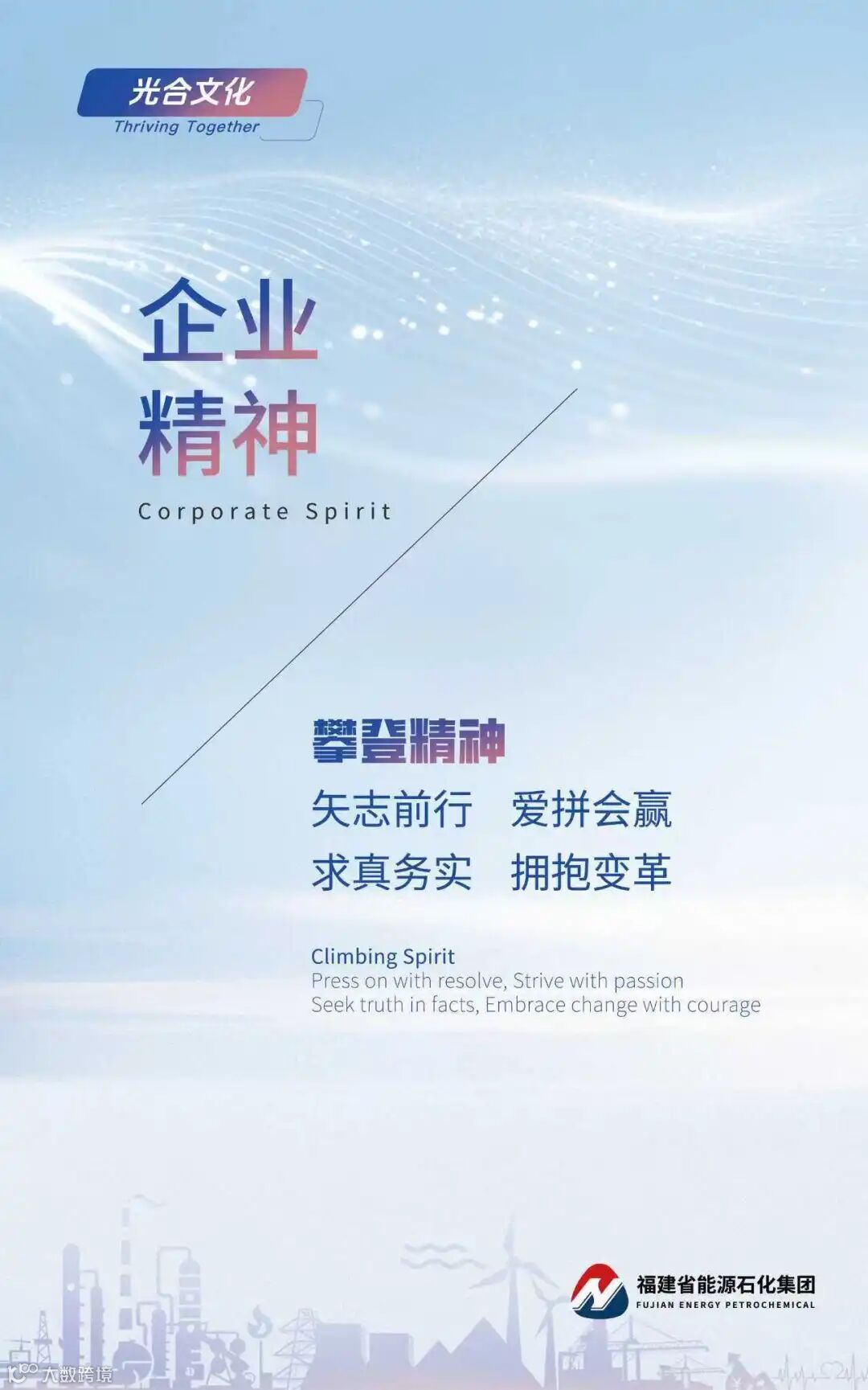 承接光合文化的能量底色,是价值创造的动能引擎。强调主动作为、迎难而上的责任意识,以及永不懈怠、拼搏奋斗的进取精神,体现的是员工在组织滋养与赋能下,将健康积极的精神能量源源不断转化为业务价值成果的动态过程。