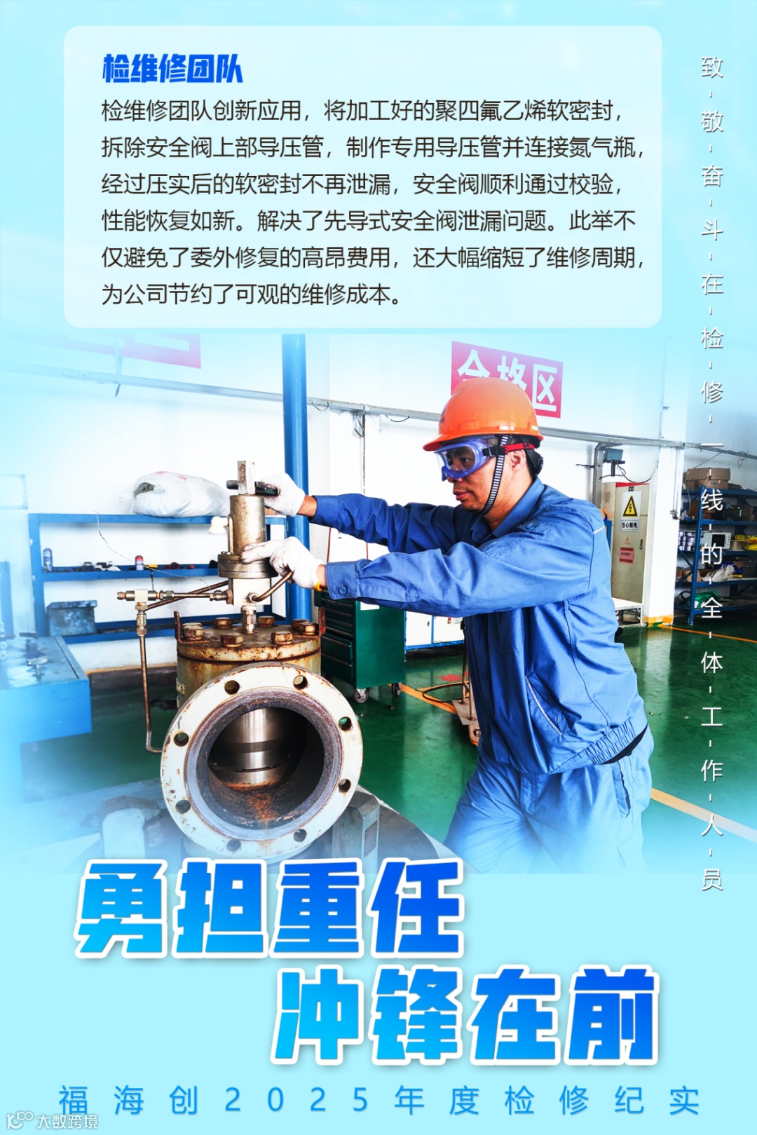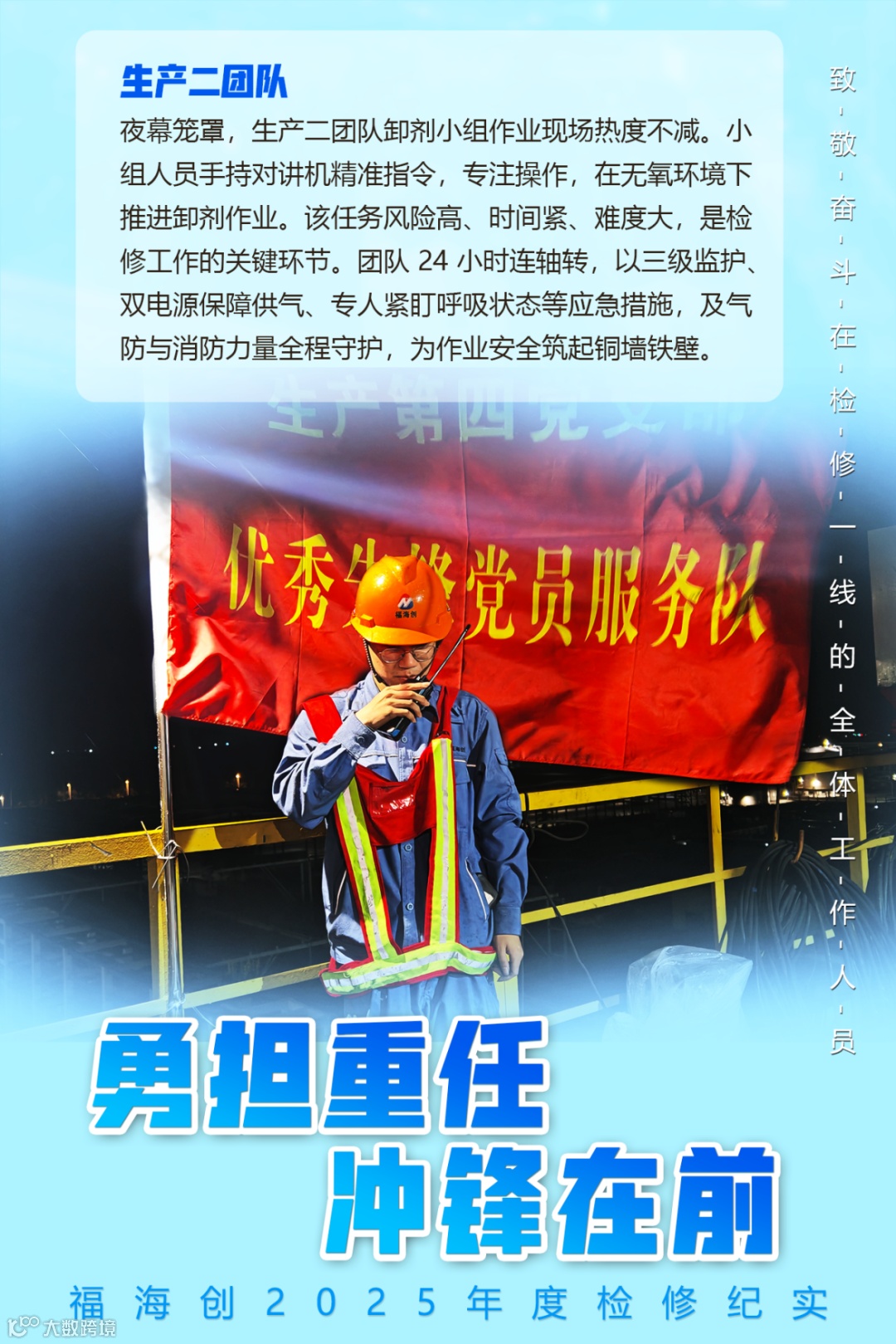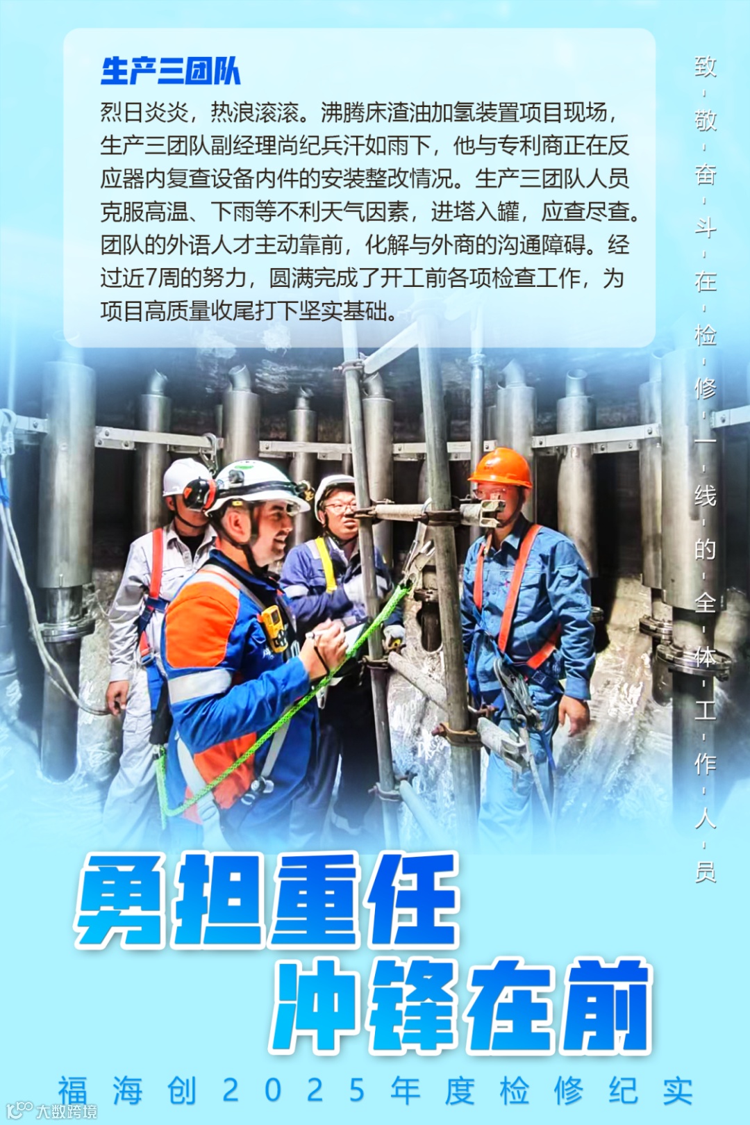 当前,正值福海创检修关键期。此次检修涵盖特种设备定检、原料适应性改造、芳烃节能改造等重点项目,关乎装置长周期安全运行,任务艰巨、节点紧迫。福海创人以“筑牢安全防线、严控质量标准、抢抓检修进度”为目标,发挥党组织战斗堡垒作用、党员先锋模范作用,在检修现场,以行动诠释责任与担当,推动福建能源石化集团高质量发展。