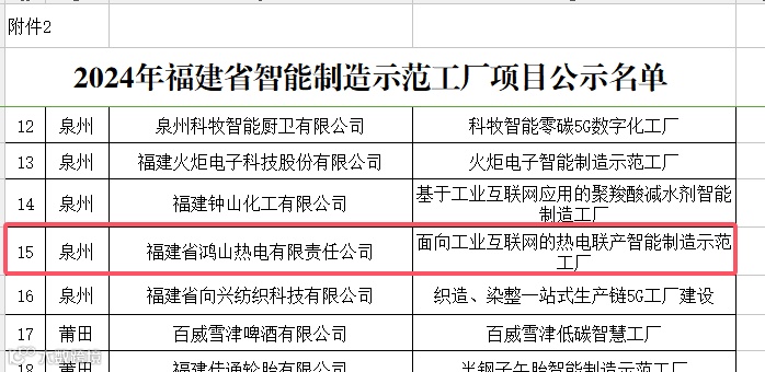 近日,福建省工信厅官网公布了《关于2024年省级智能制造优秀场景和示范工厂项目名单的公示》,鸿山热电公司成功入选并荣获惠企奖励。这一荣誉标志着该公司在智能化发展的道路上迈出了关键的一步。