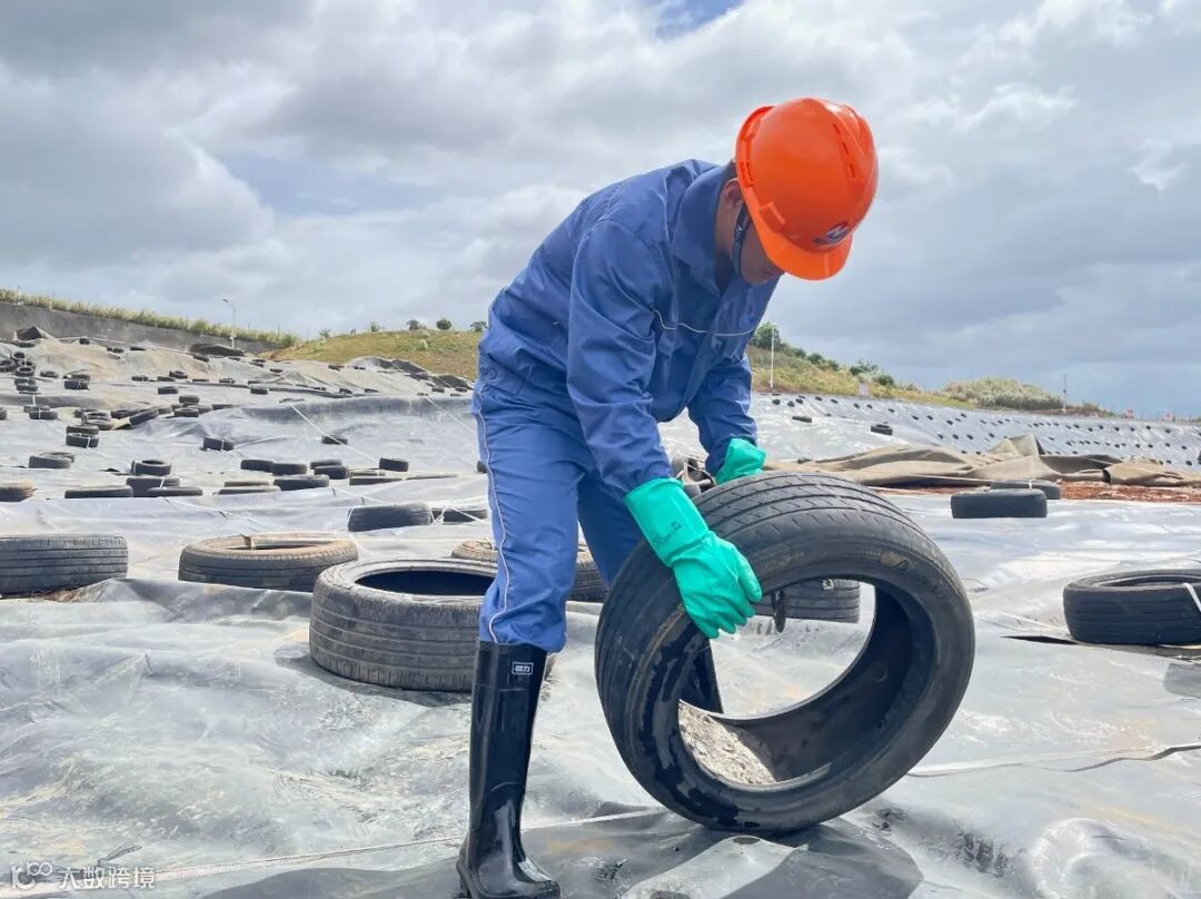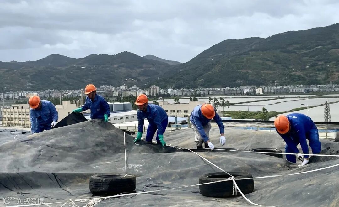 台风”格美“正步步紧逼浙闽沿海,宁德福化环保员工在填埋场加固覆盖膜,提前做好防台风的准备工作。(陈珊珊)