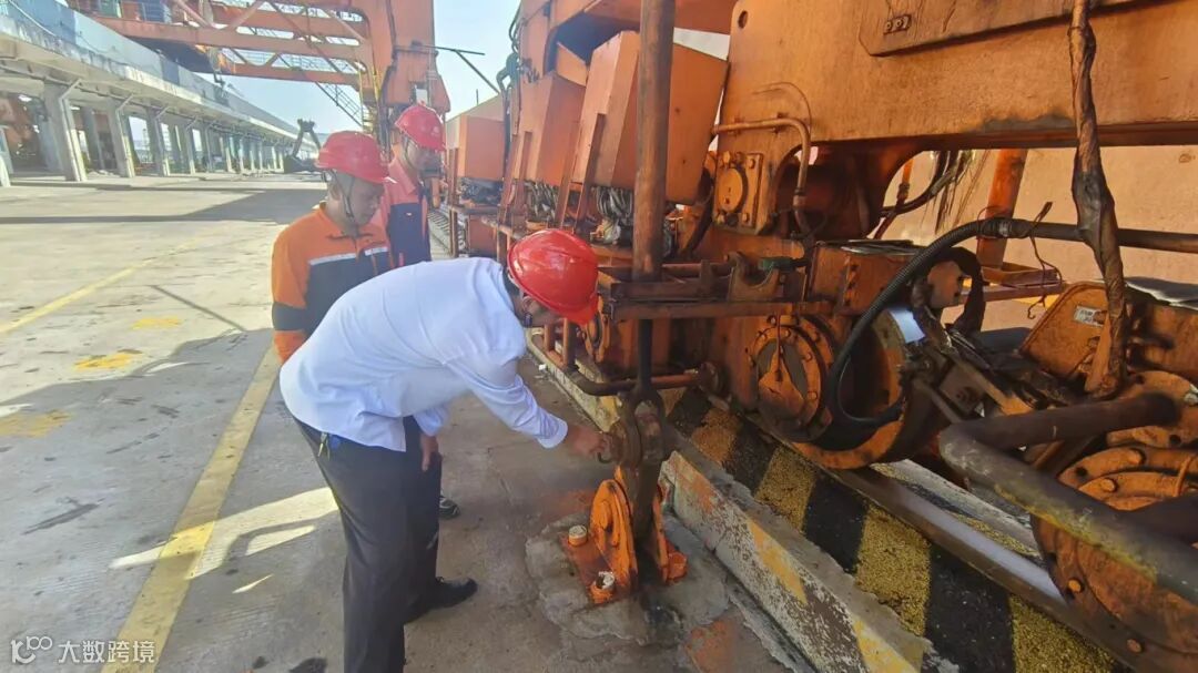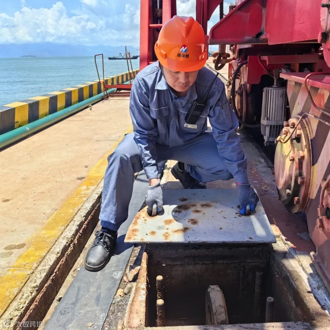 福海创码头团队对门机和卸船进行抗台风加固措施,做好锚定,拉好防风拉锁,放置好铁鞋,保障门机和卸船机安全。(谢燕平)