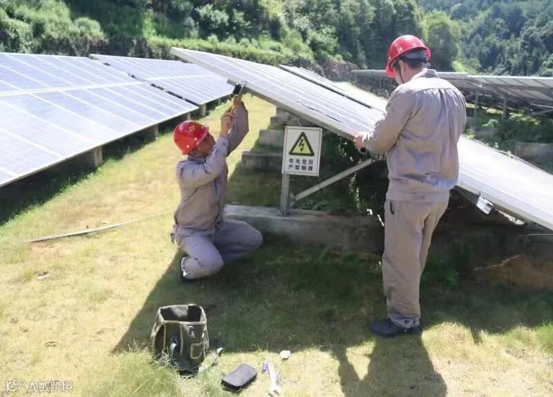 永安煤业公司上京供电所运行检修一线岗位职工冒着高温酷暑检修维护发电光伏板。(郑春生)