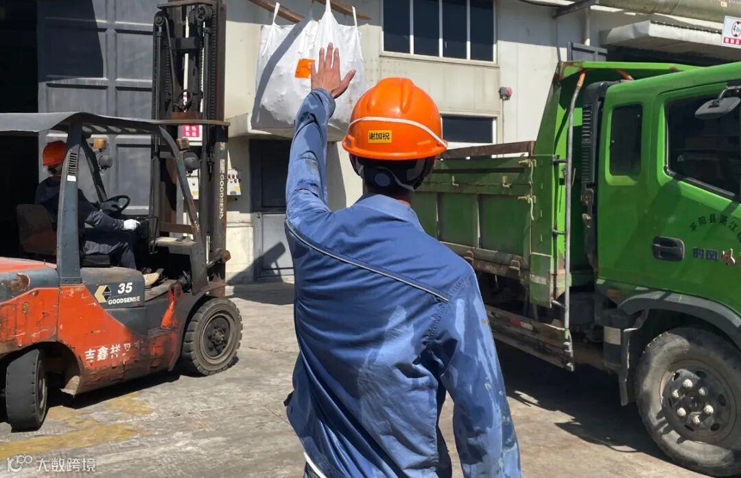 福化环保职工在现场协调危废转运调度,抢抓生产进度,长袖工服已被汗水浸湿。(陈珊珊)