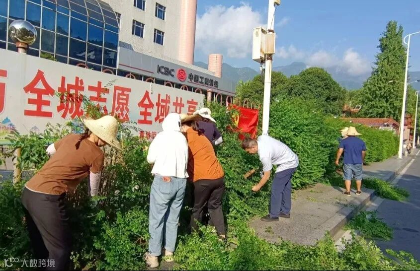 福能南纺利宏公司党支部组织党员志愿者到南纺大厦外围开展清理绿化带行动。(官俊杰)