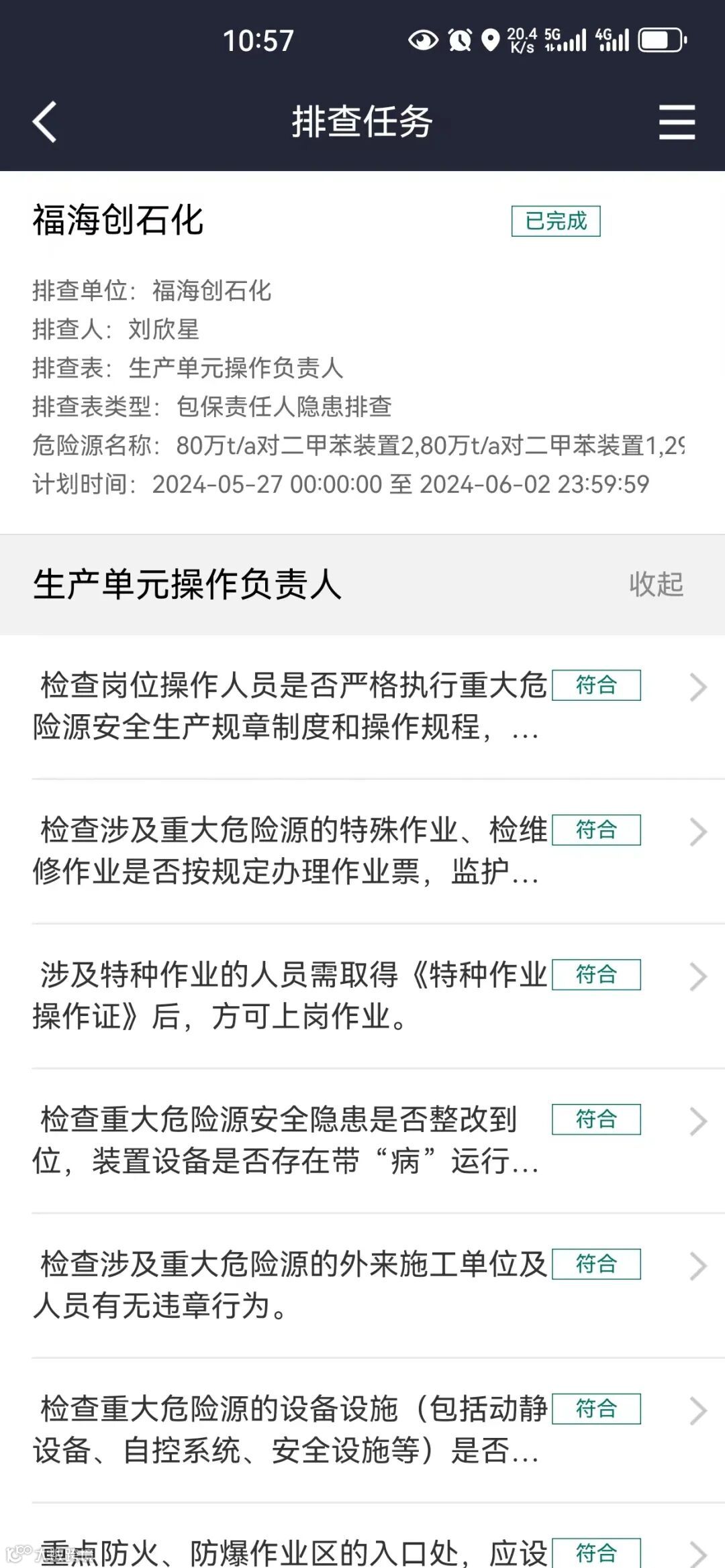 “智能巡检进一步优化了生产现场巡检,实现巡检到位、有迹可查。”生产一团队副经理王小祥这样说道。智能巡检模块采用蓝牙定位和GPS定位技术,实时记录人员巡检轨迹,并通过排班功能和巡检策略实现了引导式巡检管控和无纸化巡检数据报表。这些措施保障了人员在规定的时间、地点和岗位上能够准确执行巡检任务,有效解决了不检、漏检、巡而不检等问题。2023年,共执行巡检任务约20万人次,平均巡检到位率96.73%,共排查整改了110项巡检异常,确保装置安全稳定运行。