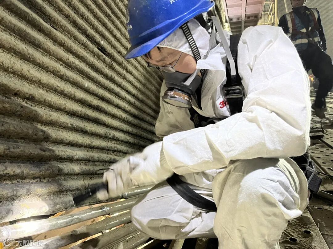 除夕夜,本是万家团圆守岁的日子,李文举却还在锅炉炉膛内,身着白色连体衣,戴着口罩,拿着手电,对#2炉水冷壁鳍片裂纹检修情况进行检查。当他完成检查从炉膛出来时已是深夜10点多了。