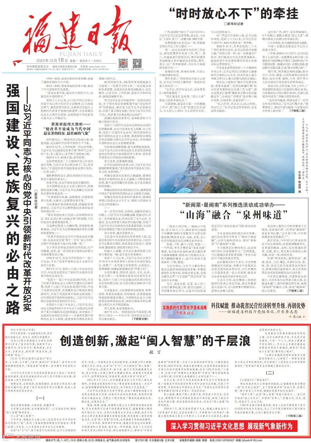 在奋进文化强省的新征程上,融入“海洋文化”、“福”文化等文化标识,挖掘“闽人智慧”内涵,梳理“闽人智慧”脉络,必将激发更多的创造热情、创新情怀,为高