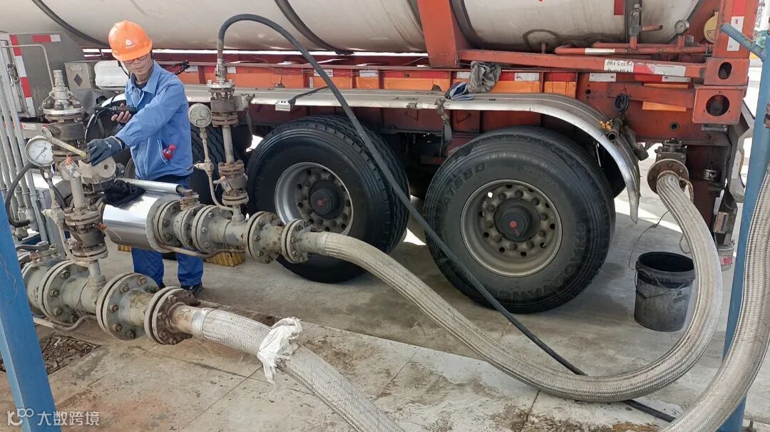 11月25日,海泉化学公司BDO产品车间里,员工们“开足马力”进行产品装车工作。