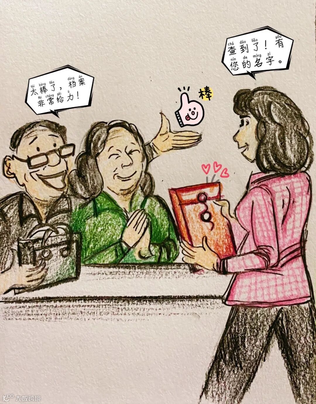 这对中老年夫妇欢呼雀跃,连声道:“没想到过了这么久还可以查到这些材料,太棒了,太谢谢你们了。”