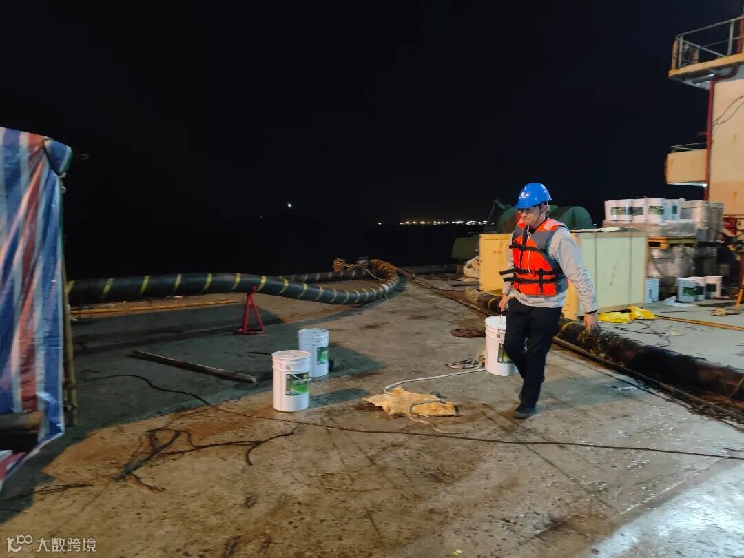 因海缆抢修需长时间海上作业,2月27日,终于等到了珍贵的连续窗口期。“起锚!”船长一声令下激荡着每一个翘首以盼出海作业的运检人员。凌晨3点,抢修船只海工一号移船出发至故障点就位,现场叮咚作响的作业声打破夜晚的宁静,一片热火朝天。这边海缆打捞,那边搭设临时工棚,远处无尘制作室布置着接头制作的前期工作,现场井然有序,互相协助,都为加快工程进度而努力。
