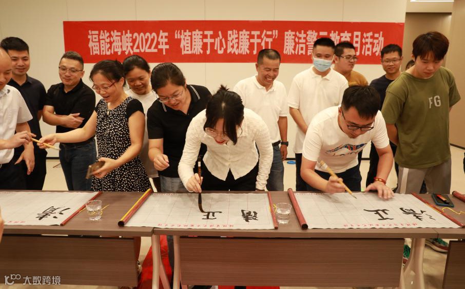 执“纪律”之笔,挥“信念”之墨,展“担当”之纸,端“作风”之砚,用笔墨纸砚一笔一划齐心书写“清正廉洁”四个大字,这是福能海峡廉洁趣味活动上的一幕。在字里行间感受廉洁的分量,既增添工作生活乐趣又传递行业廉洁正能量。