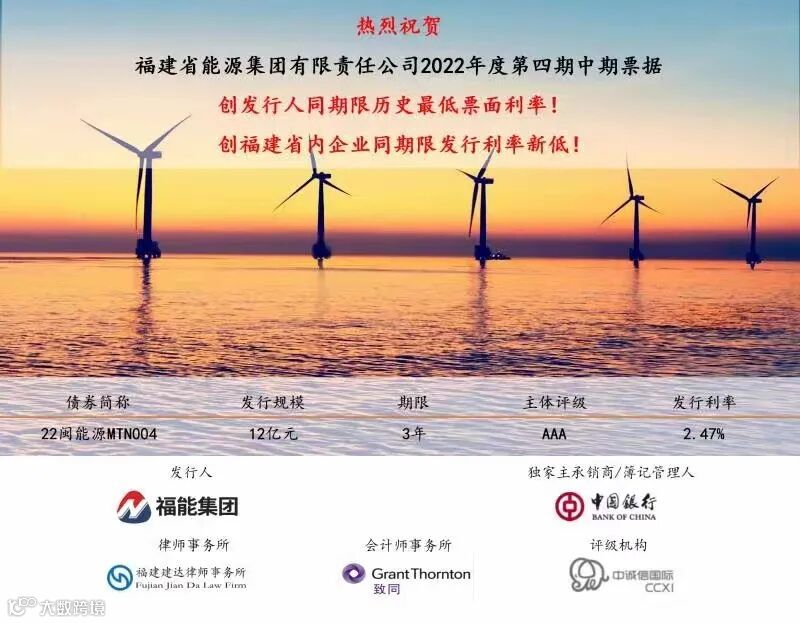 日前,福建省能源集团有限责任公司连续成功发行2022年度第三期、第四期中期票据。